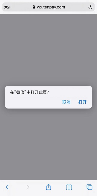 - 浏览器弹出提示,用户点击确认后自动跳转至微信或支付宝